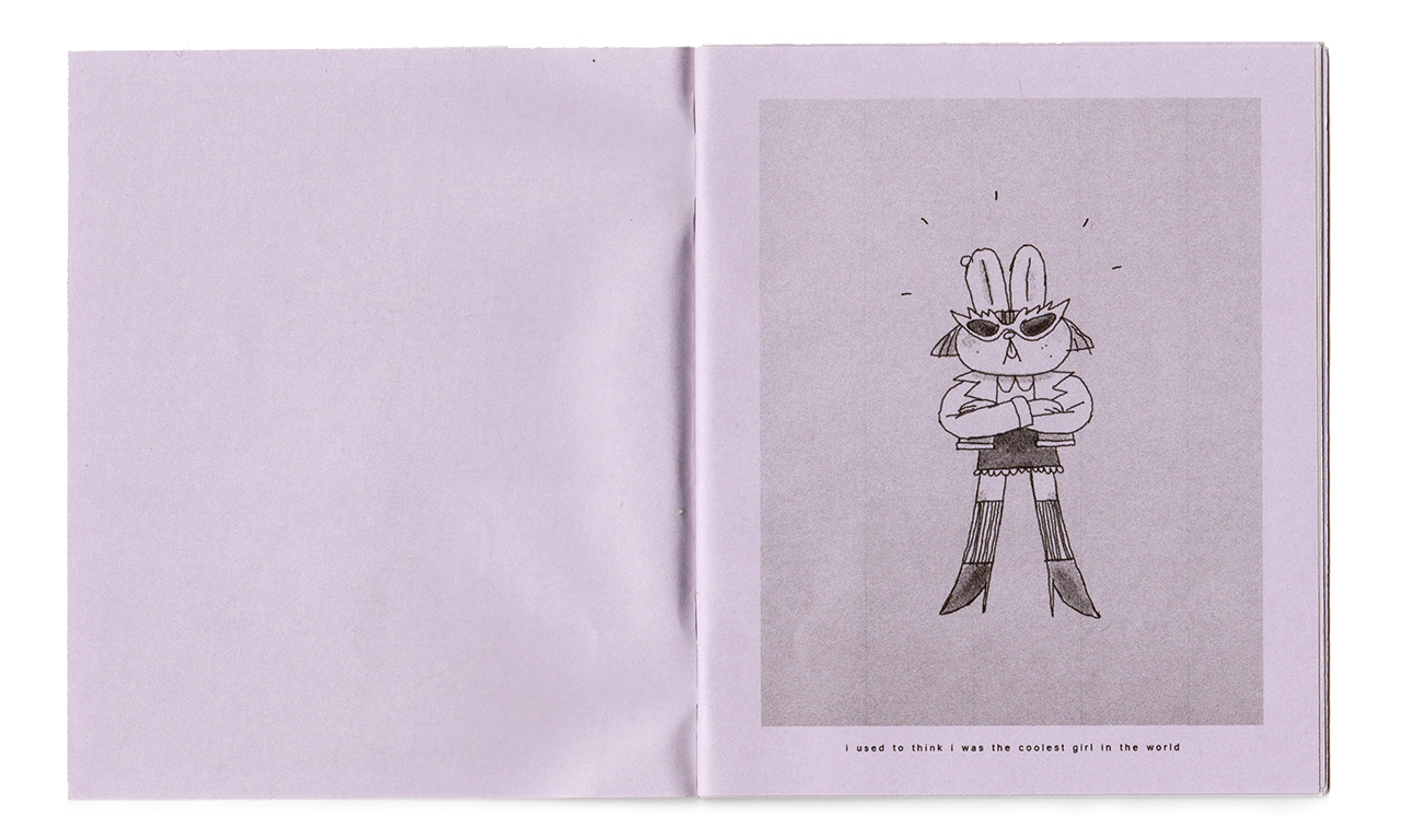 3.5" x 2.5", b&w on lavender paper, completely self-produced