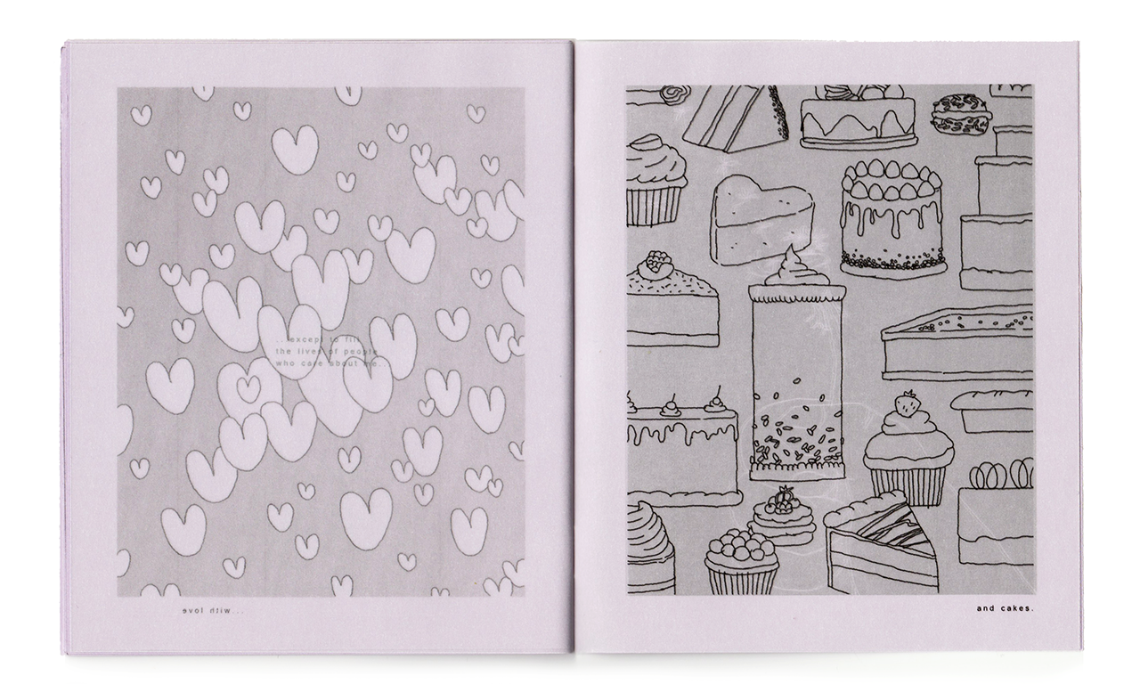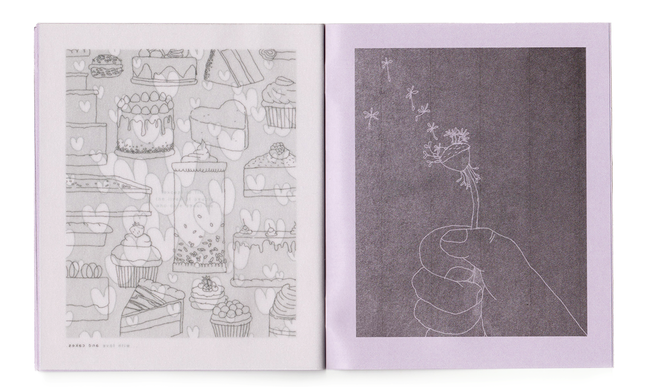 5” x 6”, b&w on lavender paper & vellum, completely self produced