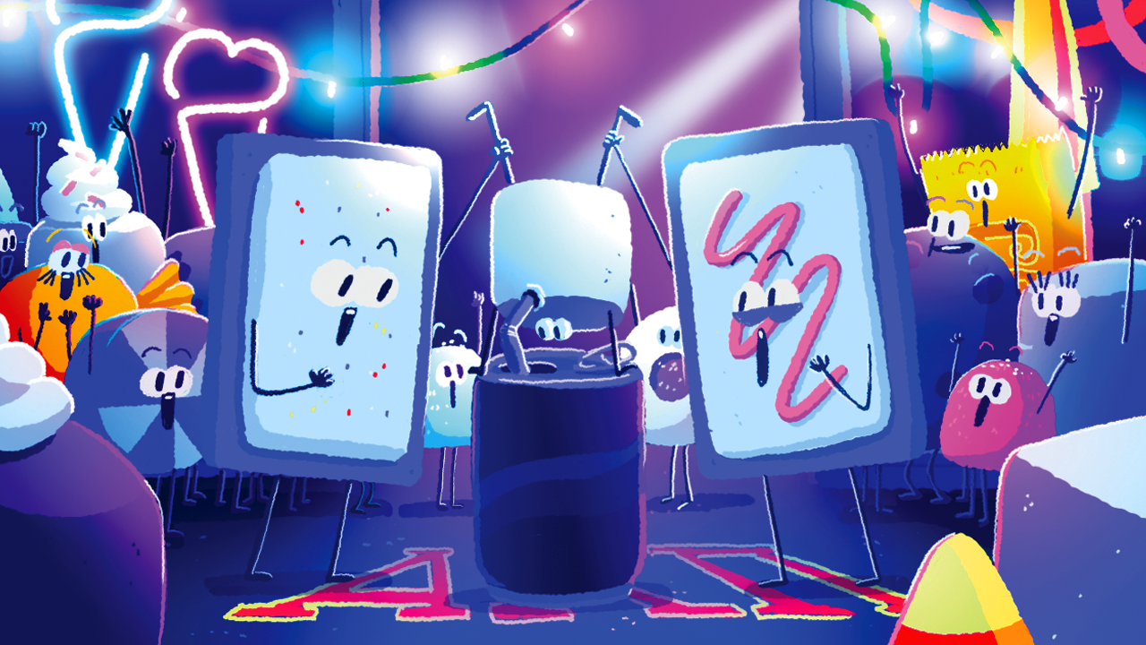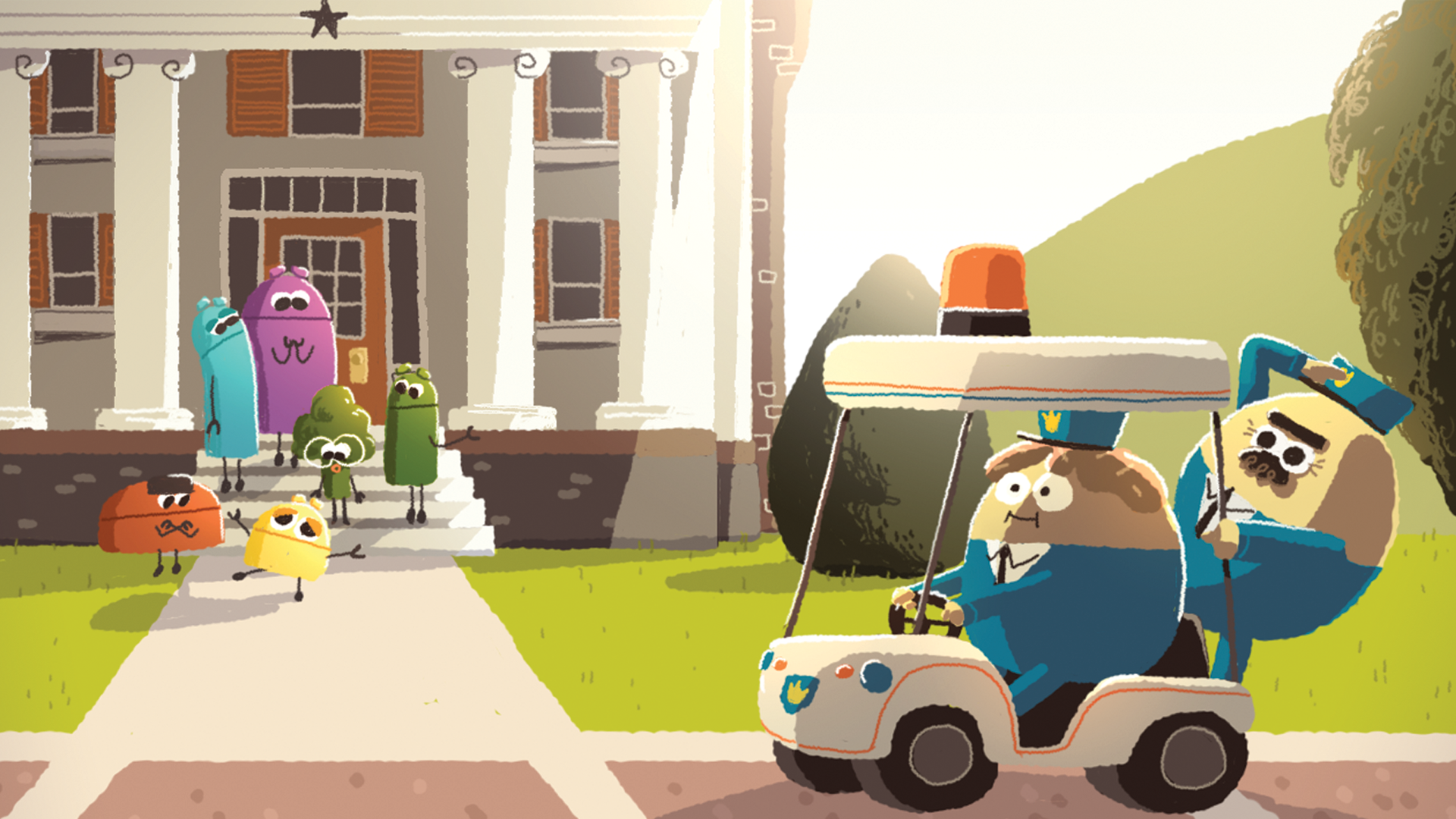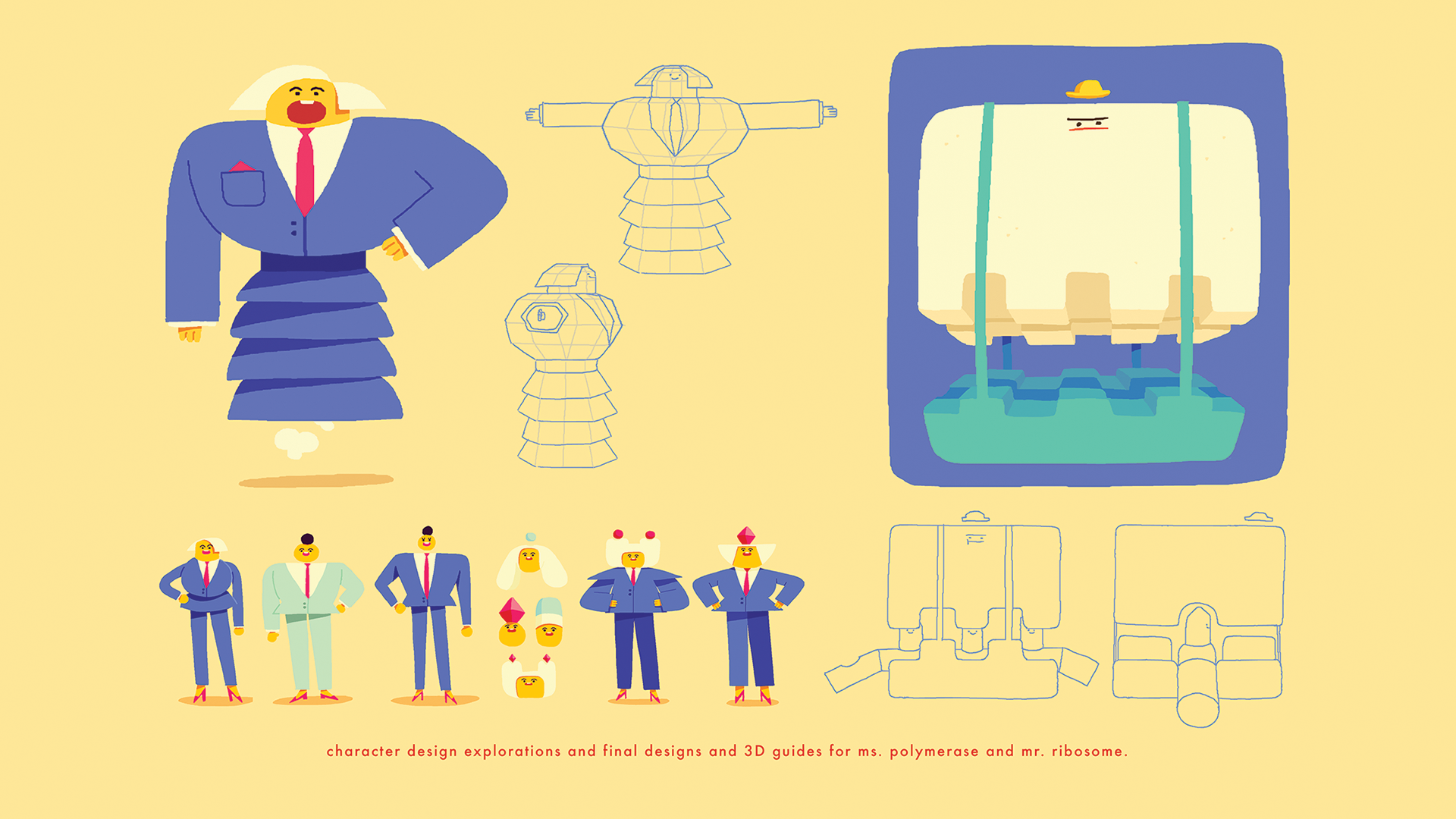 for ask the storybots season 3, an episode about dna - along with directing it, i designed the overall look and feel of the entire episode. i developed color keys and style frames, and designed the final look for every character and background. i also built all the background elements using paper in order to capture a more tactile feel