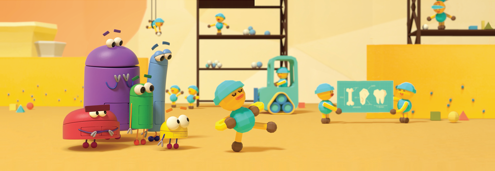 for ask the storybots season 2, an episode about nutrition - developed the visual look and feel of the background sets, props, and lighting for a stop motion episode