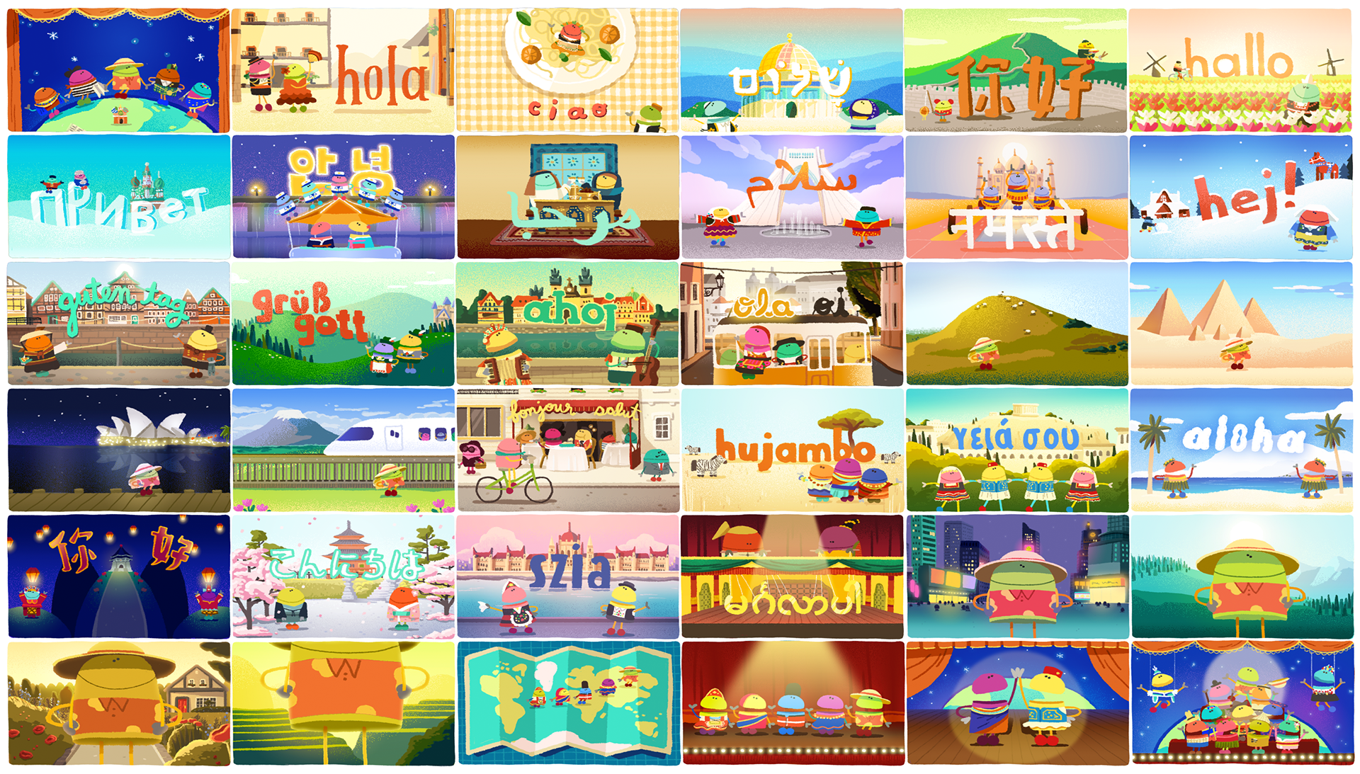 featured in ask the storybots season 3 - a learning video about the many ways to say ‘hello’ around the world. i designed, painted, and animated each of the different shots